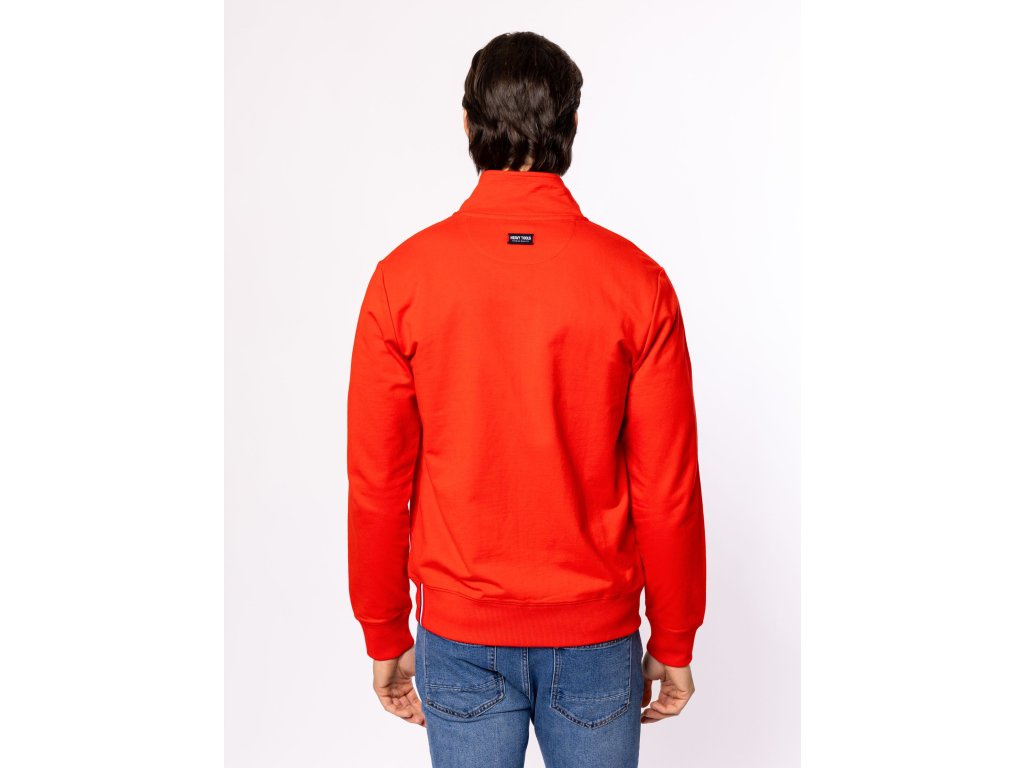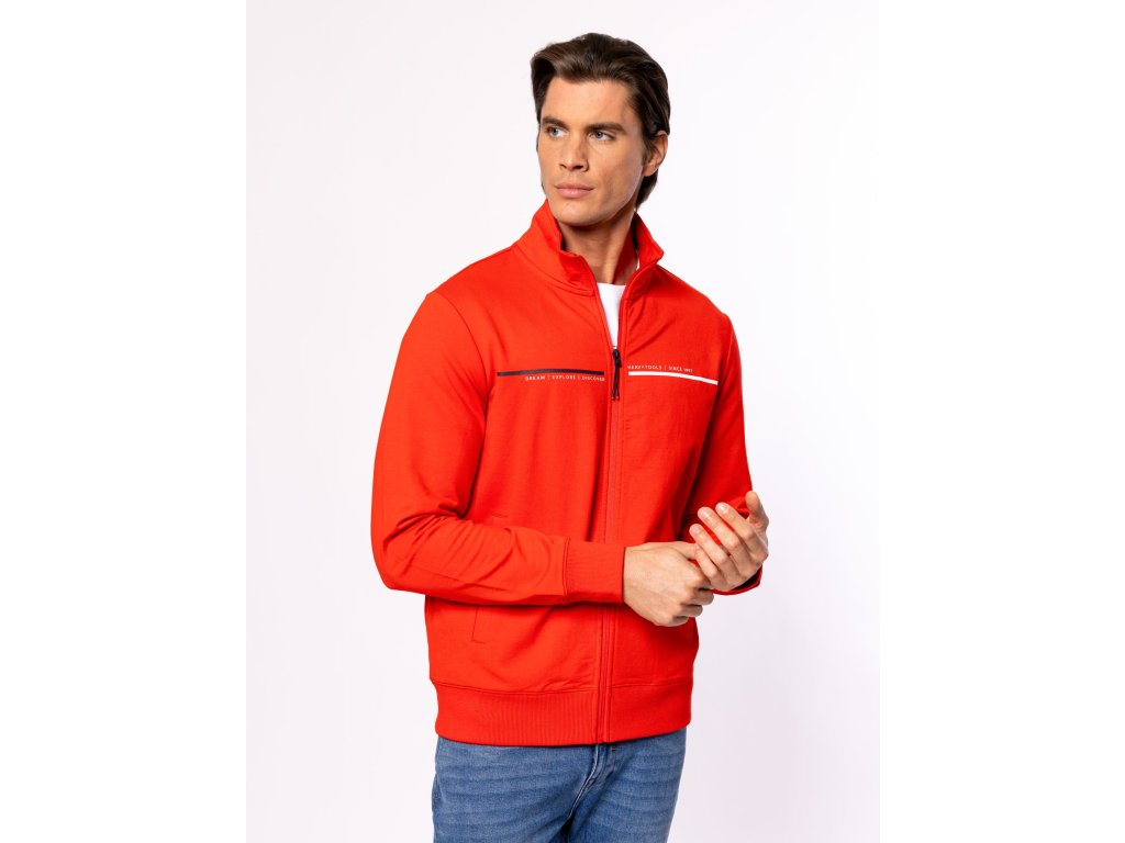 Pánská mikina se stojáčkem, elastickým žebrovaným lemem na rukávech a spodním okraji, dvě přední kapsy. Zapínání na zip.