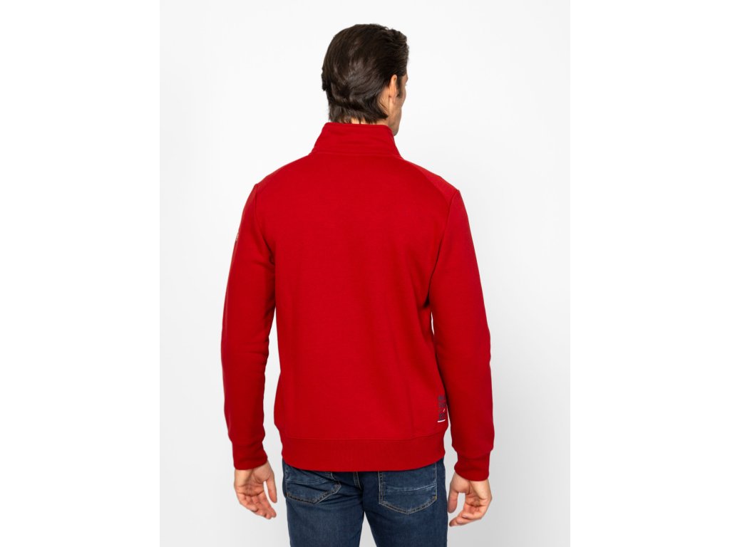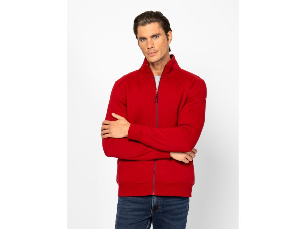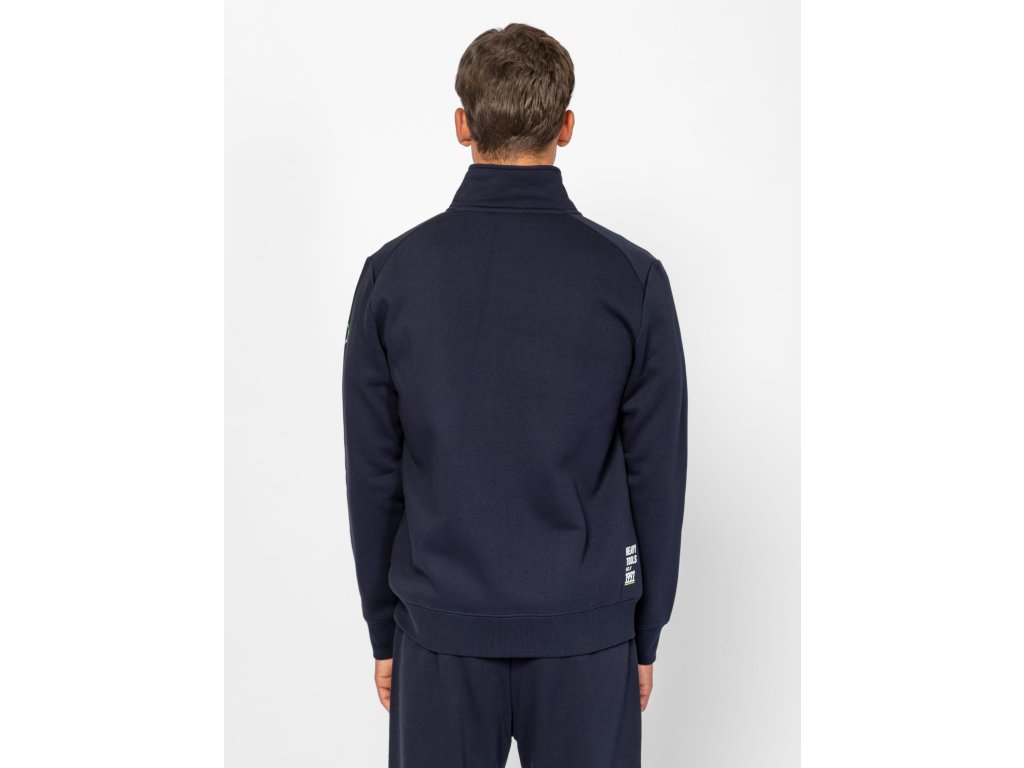 Pánská mikina na zip se stojáčkem a sportovním střihem. Má žebrované manžety a lem, kapsy na zip a malé tištěné logo na rukávech, kapsách a zádech. Skvěle se hodí k našim teplákům ZANON z nové kolekce.