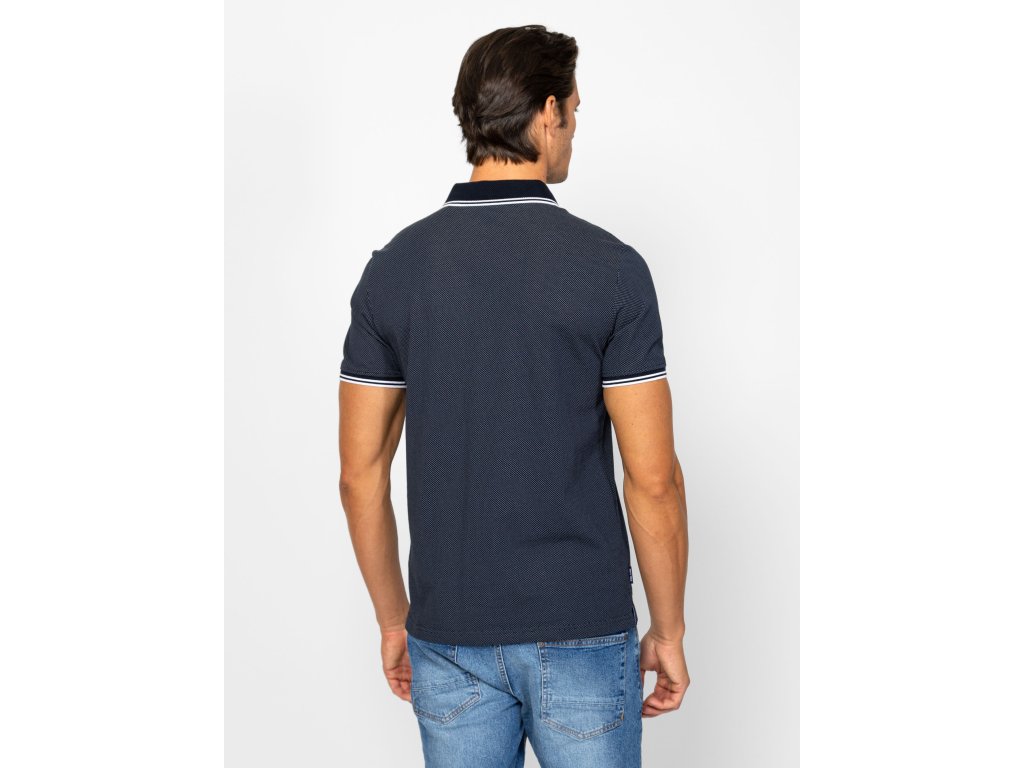 Pánské polo tričko s krátkým rukávem, vyrobené z čisté bavlněné látky s drobným vzorem, stylovým zapínáním na knoflíky a límečkem, malým tištěným logem značky vpředu, tkanou etiketou na boku.